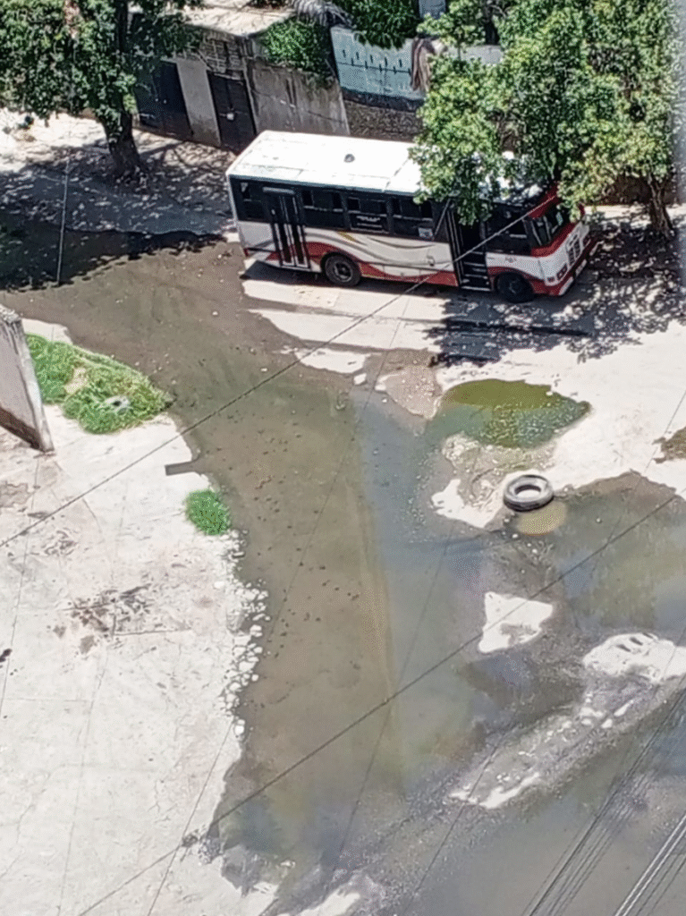 Tanto habitantes como bañistas, motorizados y demás choferes, deben pasar por encima de estas aguas putrefactas cuando se dirigen a las playas y edificios de las Opppe aledaños.