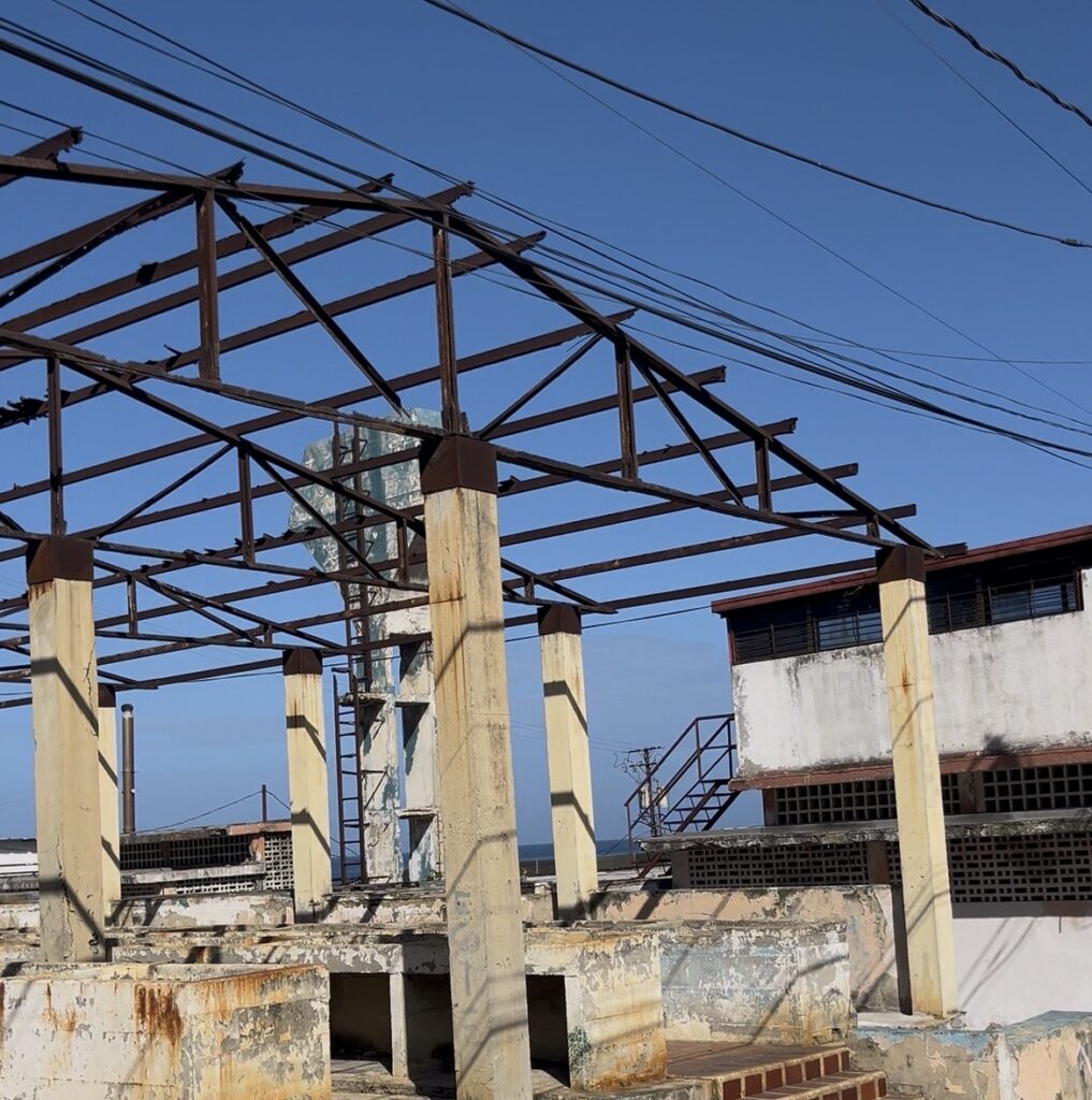 Su estructura es el reflejo del abandono y la falta de mantenimiento. Presenta los tubos del techo oxidados y filtraciones, por lo que todo se inunda cuando llueve.