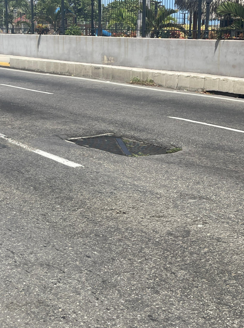Frente al restaurante Báltico, una alcantarilla hundida se ha convertido en una trampa para conductores y motorizados. La vía rápida, que debería ser un acceso seguro, hoy es una guillotina que destroza trenes delanteros, ballestas y trípodes de los vehículos que transitan a diario por la zona.