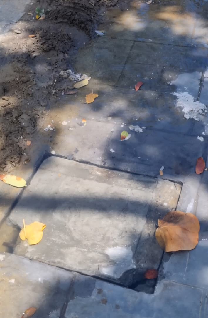 La filtración, que genera malos olores y un foco de insalubridad, ha causado la disminución de clientes en los comercios. Los vecinos denuncian la falta de respuesta de los entes responsables.