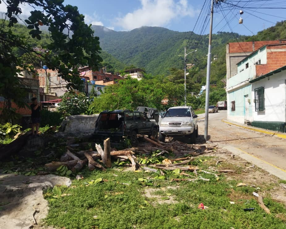 Un gran árbol cayó el día de ayer, a las 11:00 de la noche, en Caja de Agua, La Guaira, afectando 4 carros, entre ellos una Grand Vitara, un Jeep, quedando con los vidrios y parachoques destrozados. También tumbó un cable de internet, dejando incomunicada la zona.