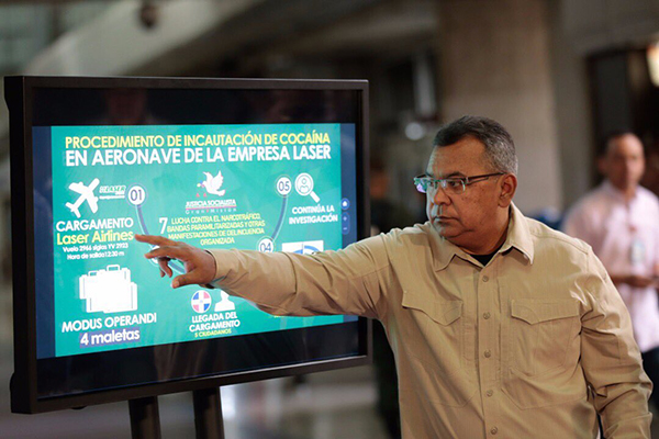 Por el tráfico de 140 panelas de cocaína escondidas en cuatro maletas que fueron enviadas en el vuelo 2976 del 30 de octubre de la línea de Laser Airlines con destino Santo Domingo en República Dominicana donde fueron incautadas, según informó el ministro de Interior y Justicia, Néstor Reverol , a través de una transmisión especial en el aeropuerto Simón Bolívar.