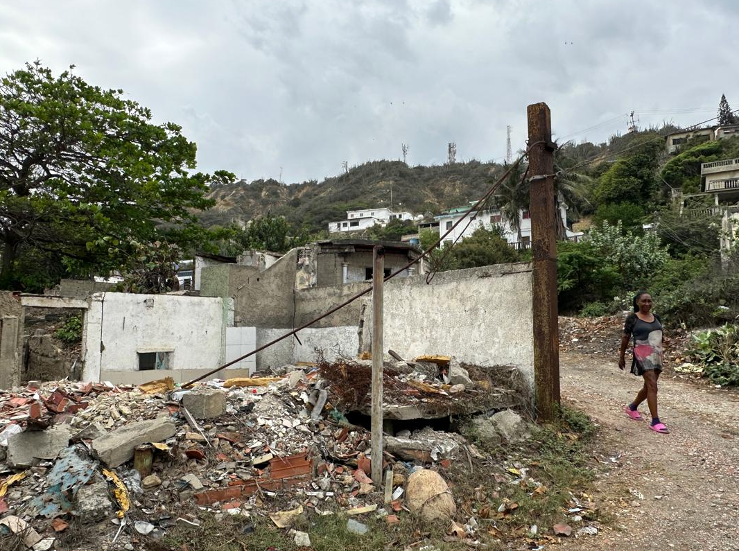 Jorge Luis Capote López y su esposa Deisy Herrera, quienes cuidan lo que anteriormente se conocía como el Rincón del Bombón, en Calle Las Brisas, en Playa Verde, atraviesan una difícil situación, ya que la estructura se ha desplomado debido al avanzado estado de deterioro, incluyendo paredes y techo.
