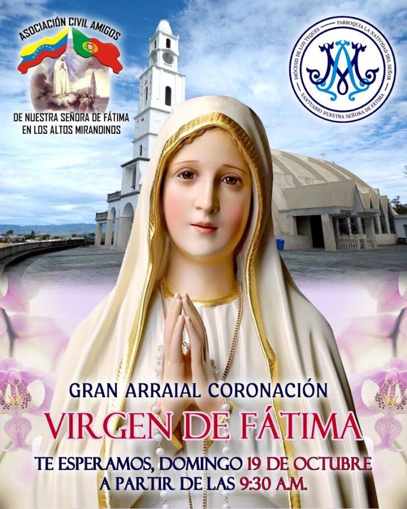 En el marco de este importante aniversario, el Presbítero Henry Rivero reveló que el día 13 de octubre se estará efectuando la coronación de la Virgen de Fátima en un acto litúrgico que involucra la celebración de la santa misa a las 5 y 30 de la tarde, un acto cargado de simbolismo y amor a la Madre de Dios.