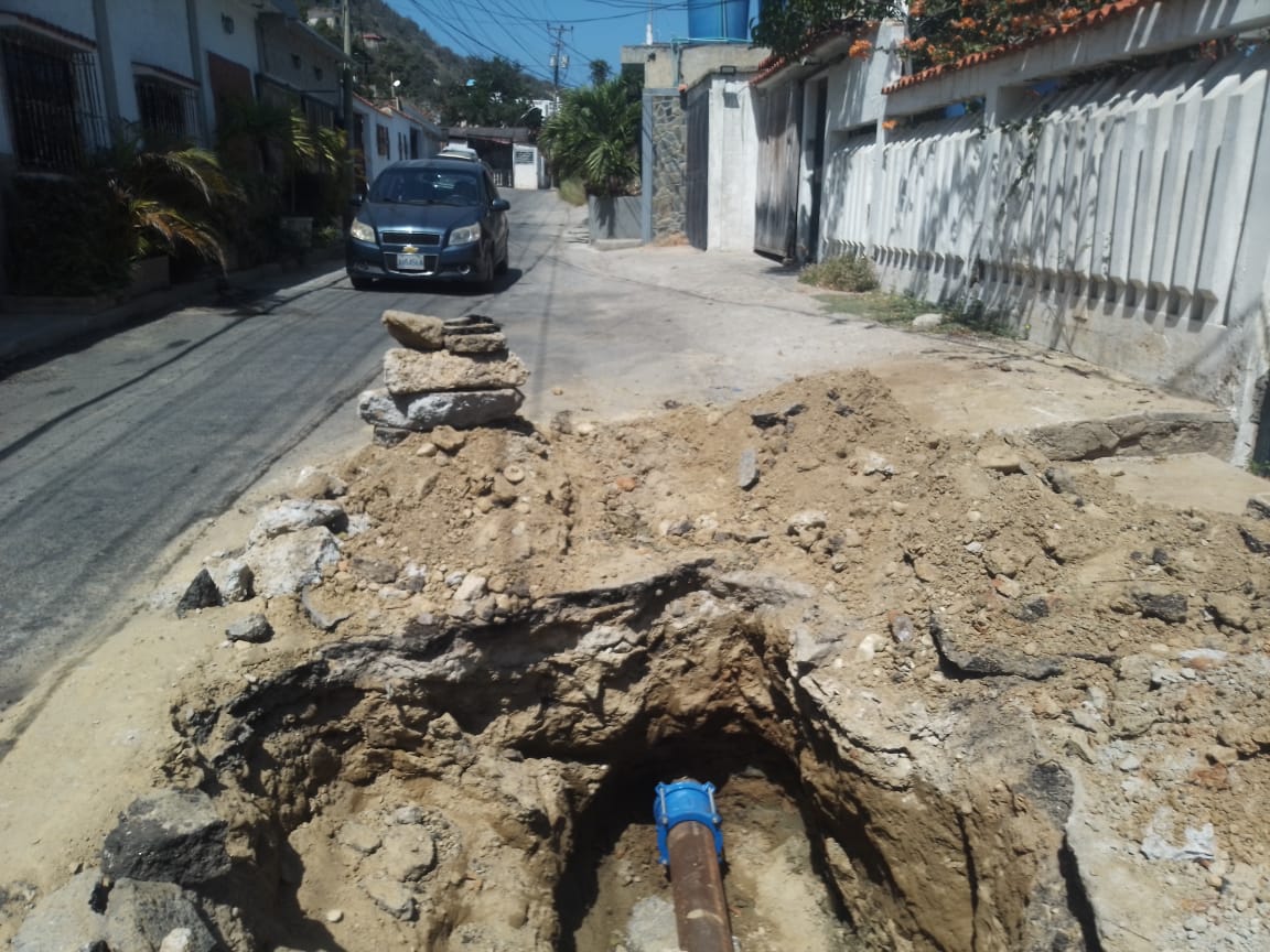 Hidrocapital realizó reparaciones por una avería, pero dejó este hueco abierto que pone en riesgo a conductores y peatones. Los vecinos hacen un llamado público para que agilicen la finalización de los trabajos en la calle Santa Rita con Bella Vista, Playa Verde