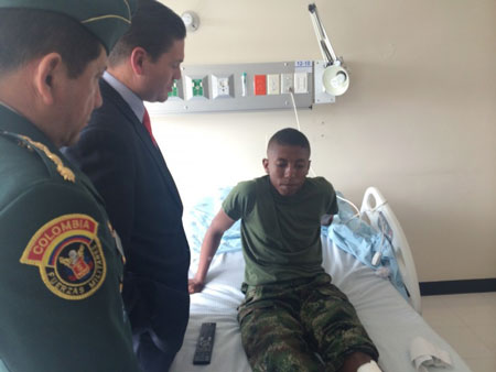 Atención médica y visita del actual ministro de Defensa de Colombia, Juan Carlos Pinzón recibieron los dos soldados colombianos liberados por las Farc en una zona rural del departamento de Arauca, nordeste de Colombia.
