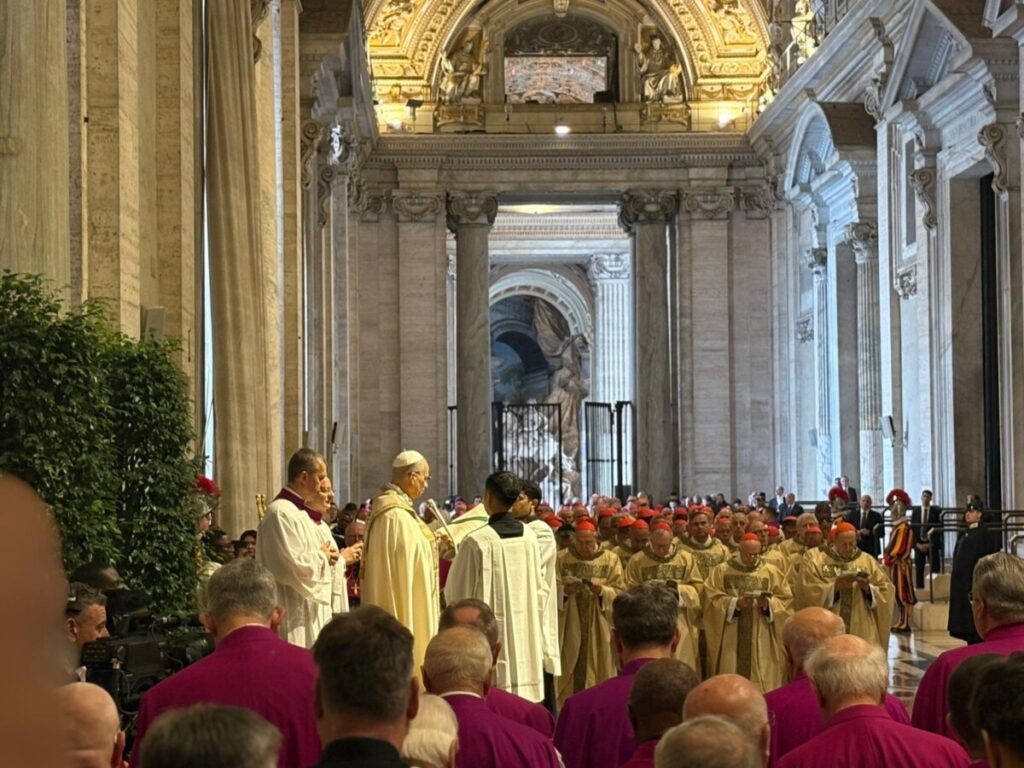 El acto en el atrio de San Pedro contó con la presencia del presidente de Italia, Sergio Mattarella, así como de cardenales, obispos, miembros de la Curia, clérigos, religiosas y fieles.