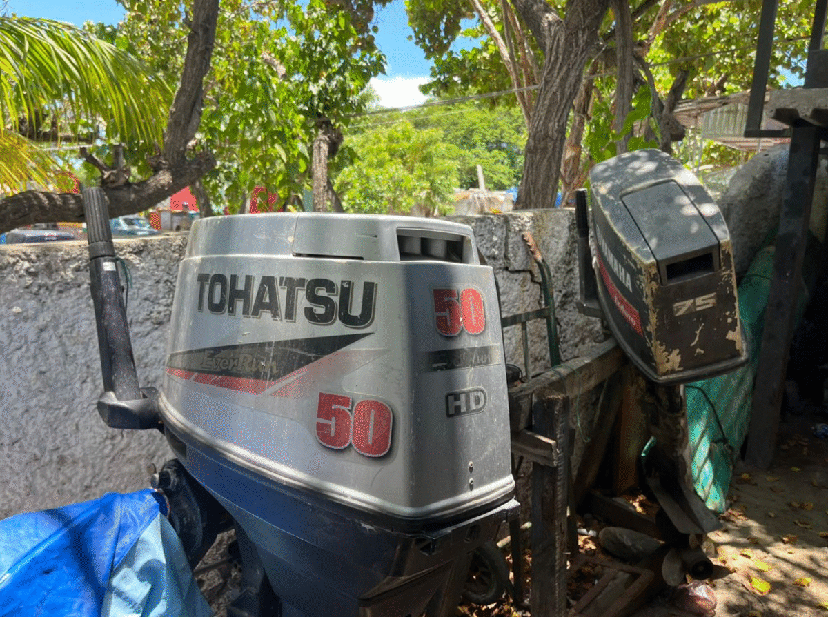 El mecánico José Luis Alonso expresa que piden préstamos para poder arreglar los que tienen, de 30, 50 y 75 caballos de fuerza, marca Yamaha, Tohatsu o Johnson. “Deberían durar 6 años, pero por la calidad del aceite duran menos”.