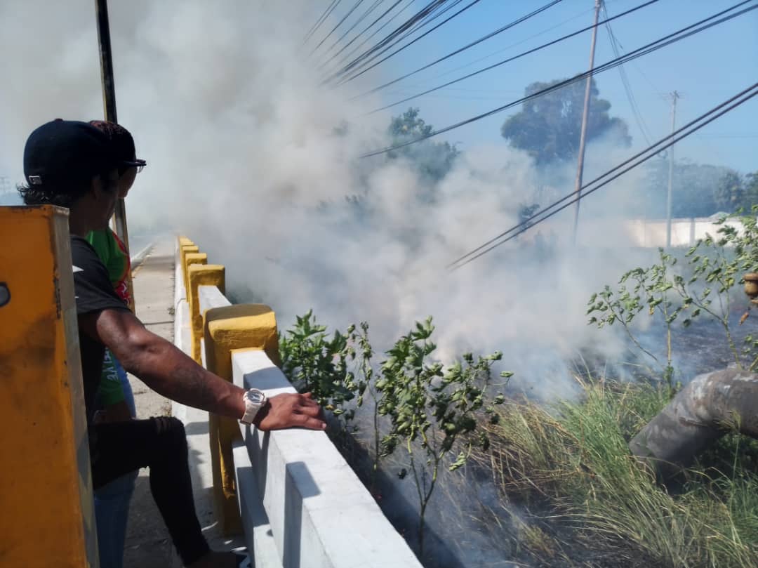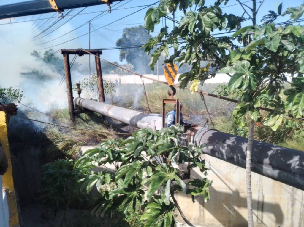 Cuando los trabajadores de Hidrocapital soldaban un tubo matriz, en el área del puente El Trébol, una chispa cayó en la abundante maleza y se produjo un incendio.