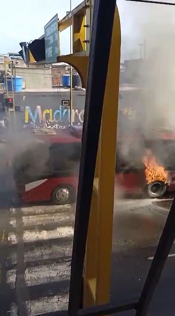 En horas de la mañana de este viernes 6 de marzo, vecinos y transeúntes observaban como por encima de las ruedas traseras de un Yutong salía el fuego que consumió parcialmente la unidad, en el semáforo de Sorocaima, avenida Soublette, sentido oeste.